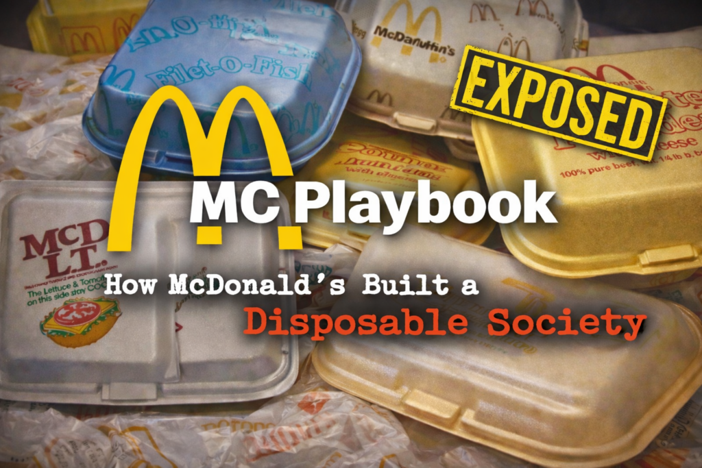 We’re zeroing in on McDonald’s, how they manufactured a throwaway culture and its history of dodging responsibility for waste. From lobbyists and PR spin doctors, to biased studies, to big-budget marketing, we’re uncovering it all.